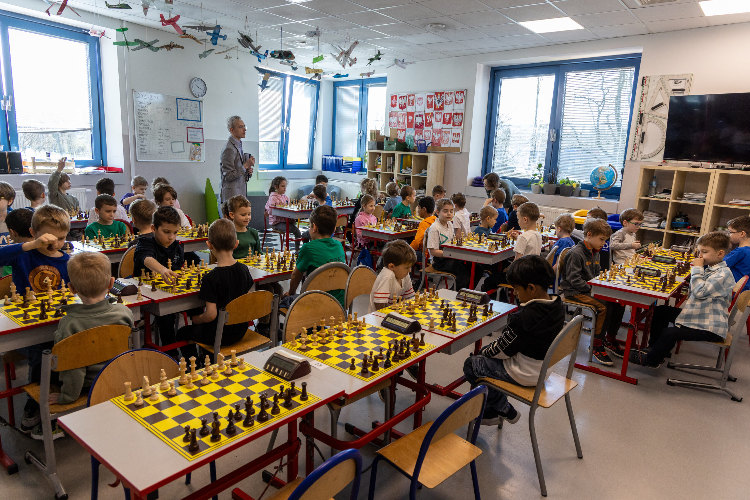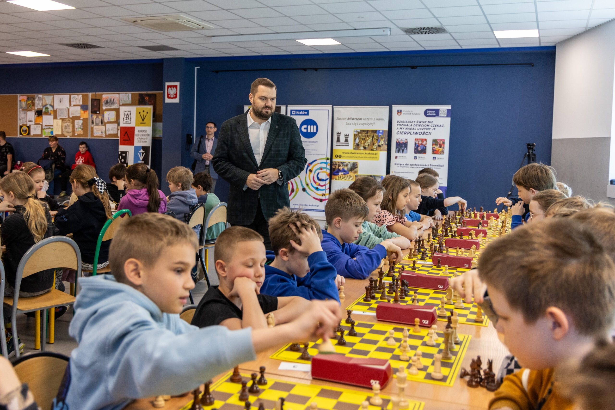 W zawodach wzięło udział prawie 200 młodych szachistów z krakowskich placówek oświatowych – imponująca frekwencja i świetna energia przy szachownicach 👏